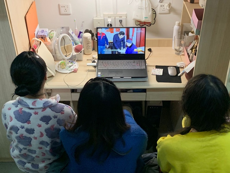 本网讯(文/图 党委宣传部)11月18日晚21点,央视综合频道“时代楷模发布厅”节目向全社会发布了中宣部关于授予黄诗燕、毛相林“时代楷模”称号的决定,并通过CCTV和“央视网”APP同步进行现场直播,我校组织广大师生在第一时间认真观看了节目。由于播出时间是在晚上,除少部分同学在辅导员老师的组织下前往教室里集中观看之外,大多数师生都是回到了教职工宿舍和学生寝室,通过电视、电脑和手机APP连线等方式进行观看。