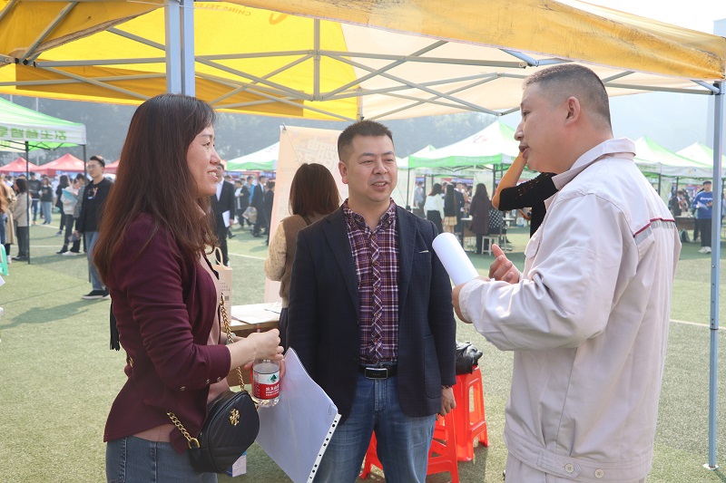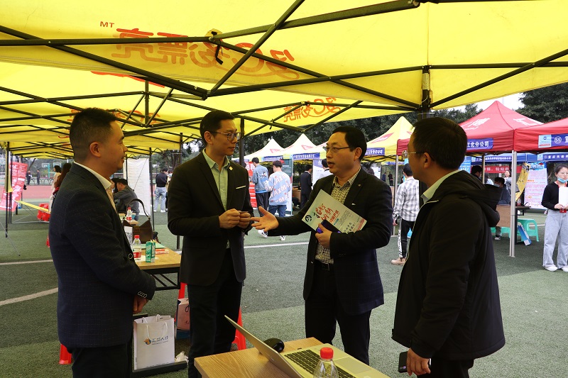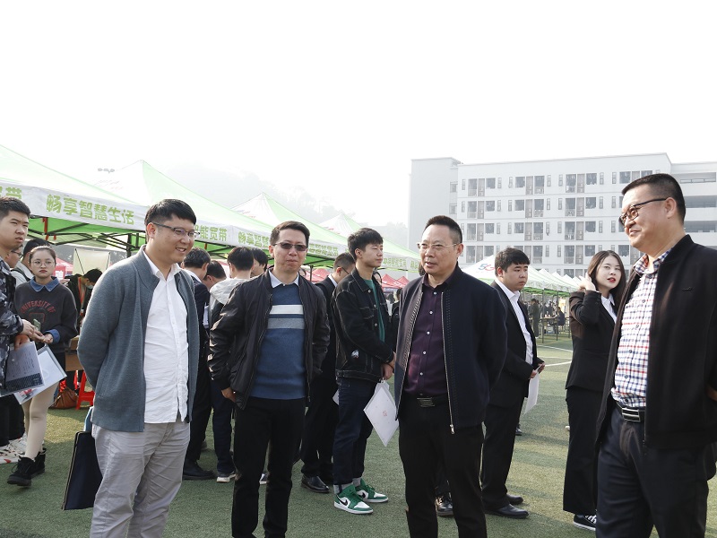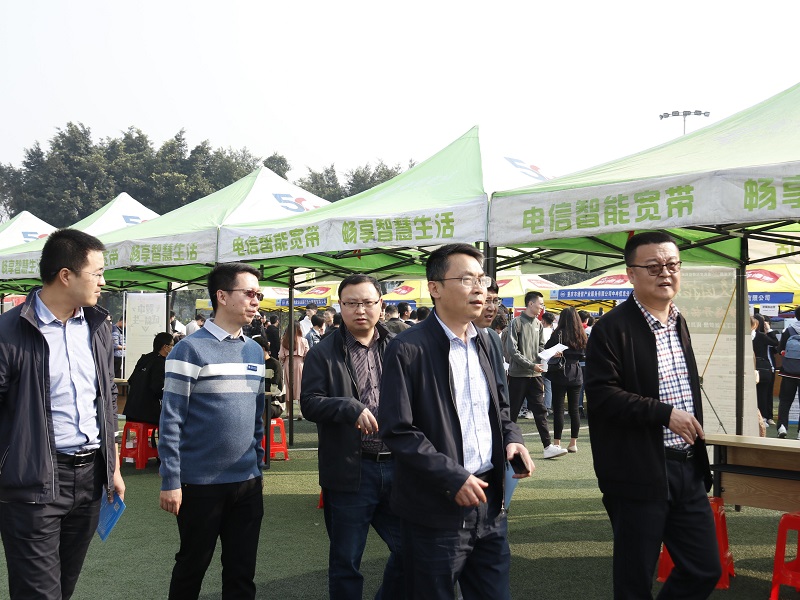 重庆市大学中专毕业生就业指导服务中心副主任唐雪平、部长尹亮,重庆工程学院校长桂国庆、党委书记兼督导专员谭明术、党委副书记兼常务副校长张业平、校长助理王建东等校领导以及相关职能部门负责人、各二级学院院长、书记来到现场了解招聘单位人才需求以及学生应聘情况。