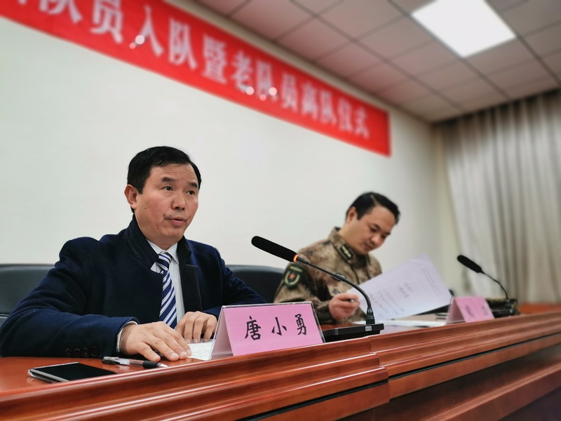 校纪委书记唐小勇、党委武装部部长熊力为老队员们颁发离队纪念牌并作深刻的交流,教育老队员在风吹雨打中提升高尚的集体荣誉感,在艰难险阻面前展现青年一代的风采。
