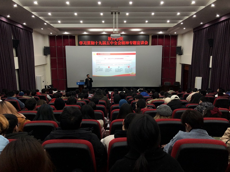 软件学院举办十九届五中全会精神专题宣讲活动,旨在帮助同学们深刻认识到此次会议是在我国全面建成小康社会胜利在望,全面谋划2035年远景目标的重要历史时刻开的具有里程碑意义的大会。王助理希望软件学院的同学们把个人发展同学校、国家的发展结合起来,学好本领,用于创新成为新时代中国特色社会主义的合格建设者和可靠接班人。