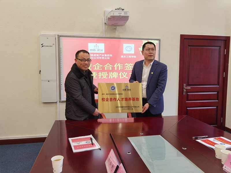仪式上,土木工程学院院长雷江、江苏中南建筑产业集团有限责任公司华西公司总经理舒明成分别代表校企双方签订了校企合作协议,并互相授牌。此次签约授牌仪式圆满成功,为学院不断提升校企合作工作质效积累了有益经验,探索了学院与知名企业深化合作的方法路子,对提升学院人才培养质量具有重要意义。