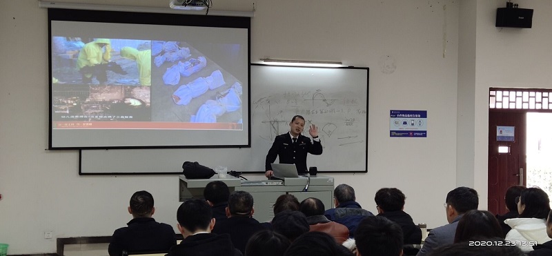 在安全知识学习环节,余教官围绕防火安全知识、逃生自救及火灾事故发生的预防措施、消防器材的正确使用方法等几个方面作了详细讲解,并运用真实的案例展示了各种易被人忽视的安全隐患和处理办法,让在场师生受益匪浅。