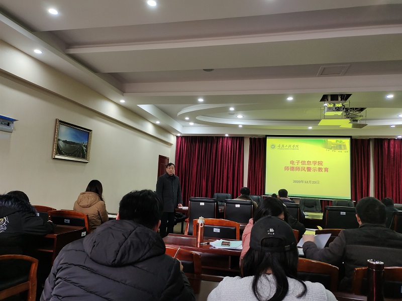 本网讯(文/图 电子信息学院 涂敦兰)为加强新时代师德师风建设,落实立德树人根本任务,引导广大教师争做“四有”好老师,12月23日,电子信息学院组织召开师德师风警示专题教育会,院长何世彪为全院教职员工作教育讲解。