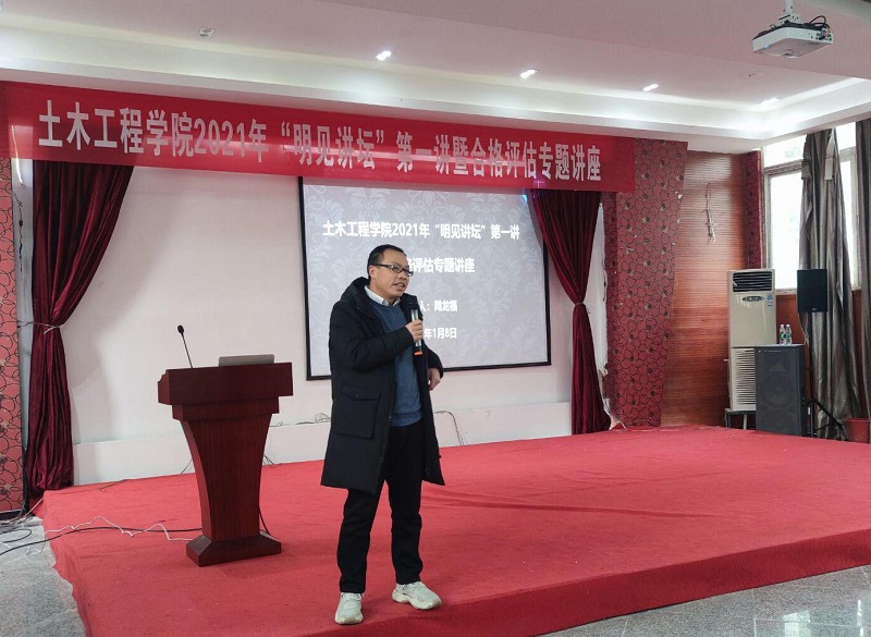 本网讯(文/图 土木工程学院 宁俊龙)新年度、新气象、新作为,1月8日,土木工程学院举办了2021年“明见讲坛”第一场讲座,校长助理周龙福教授担任主讲嘉宾。