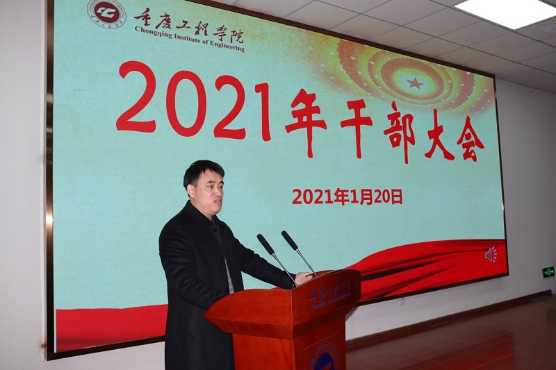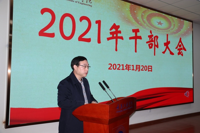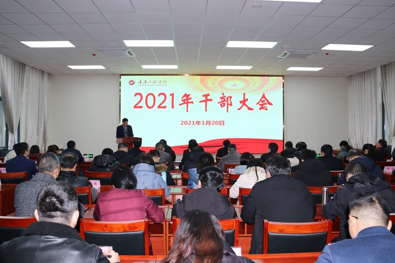 首先桂国庆校长代表学校作2020年工作总结,并对2021年工作做部署。桂校长对2020年工作从强基固本,党建工作获得新成就;抓实重点,评建工作取得新进展;聚焦中心,育人质量获得新突破;以人为本,人才队伍建设展现新作为;提质增效,学科科研实现新提升;强化担当,招生就业工作取得新成效;文化引领,校园文化建设取得新业绩;保障有力,办学条件获得新改善;科学发展,平安和谐校园开创新局面等9个方面进行了工作回顾。认为2020年学校取得的成绩,是全体干部身先士卒、以身作则,带领和团结全校教职工努力的结果,而2021年面临更多挑战。之后桂校长对2021年工作进行了部署,认为2021年全校要从加强党建工作,发挥党委政治核心作用;科学制定规划,明确发展目标;加大投入力度,改善办学条件;加快信息化建设,推动教育教学管理现代化水平;实施人才强校工程,提高教师队伍素质和整体水平;加强教学质量管理,实施质量兴校工程;加强学科建设,提高科研实力;加强校企协同育人,突出实践教学特色;创新工作方法,提高招生就业质量;加强思想政治教育,提高学生综合素质;加强安全管理,建设和谐校园等11个方面着手抓好学校各项工作,要发扬重工人踏踏实实奋力拼搏的精神,一丝不苟精益求精的精神和团结一致敬业奉献的精神。桂校长代表学校党政祝大家辛丑年身体健康、阖家欢乐。