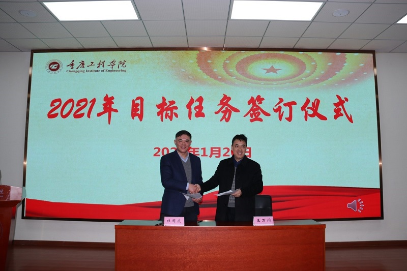 最后,董事长王万均发言表示,本次干部大会的召开和目标任务书签订仪式的举行,给学校的发展指明了方向,学校全体教职工要心揣“办中国一流民办大学” 的重工梦,办出重庆工程学院的特色,促质量,树品牌,谋发展。办出专业特色,狠抓专业建设和课程建设。办出培养特色,从教什么、谁来教、怎么教三方面入手;专业方向紧扣经济和科学技术发展潮流;抓好学科和专业带头人、“双师”队伍建设,加强教师师德师风教育。办出“校企合作,产教融合”培养模式特色,学校和企业、生产和教学深度融合,保证学生持续高就业率,纲举目张,抓住重点。董事长要求各职能部门充分发挥民办高校机制优势,抓改革、抓服务、抓保障,不断提高工作效率,提高员工积极性,提高教职工幸福感。2021年是本科合格评估迎评工作关键之年,全校上下要高度重视,全员重视,结合岗位职责做好本职工作。希望全体大家不忘初心,砥砺前行,勇担责任,建功立业,祝大家新年快乐,牛年大吉。