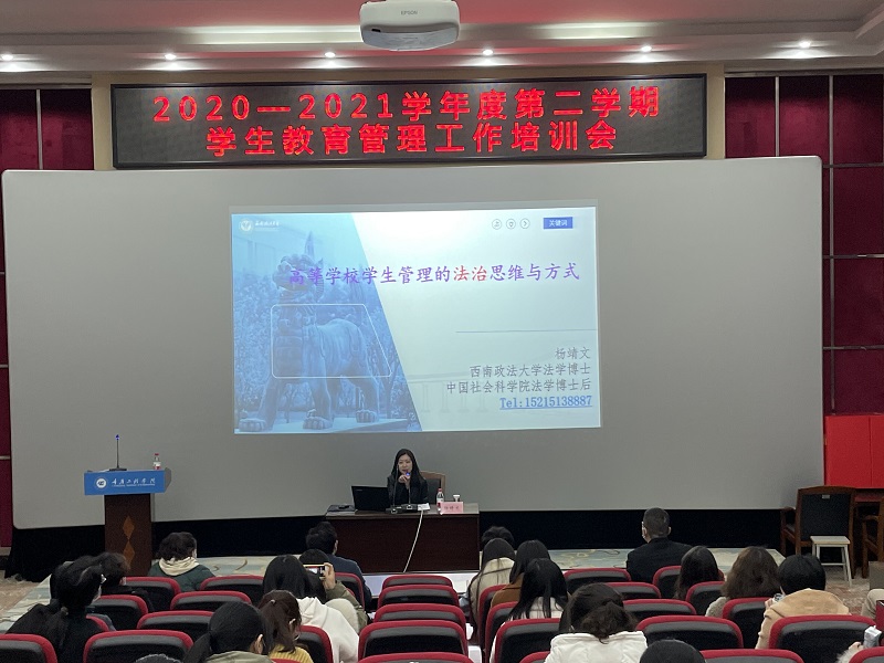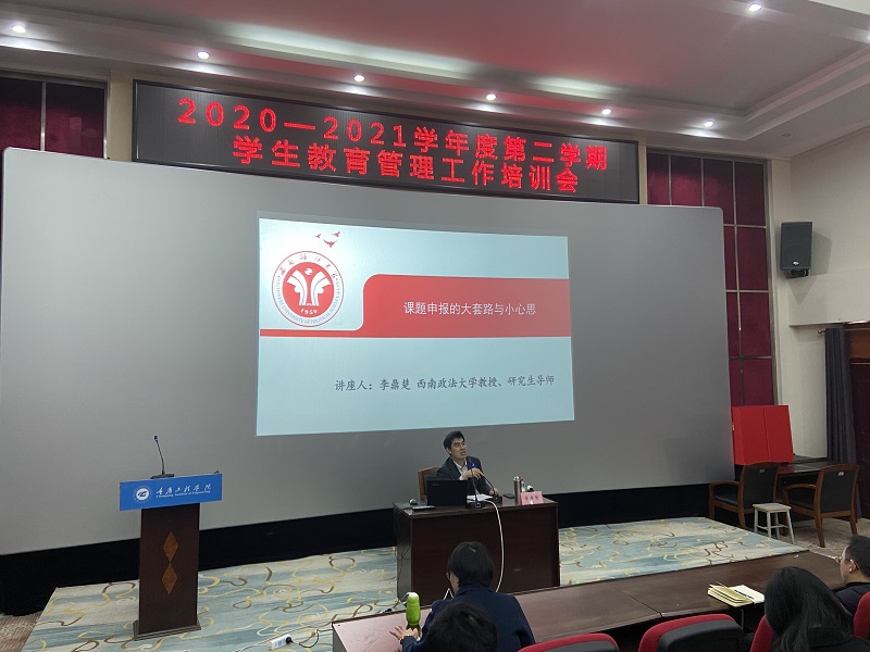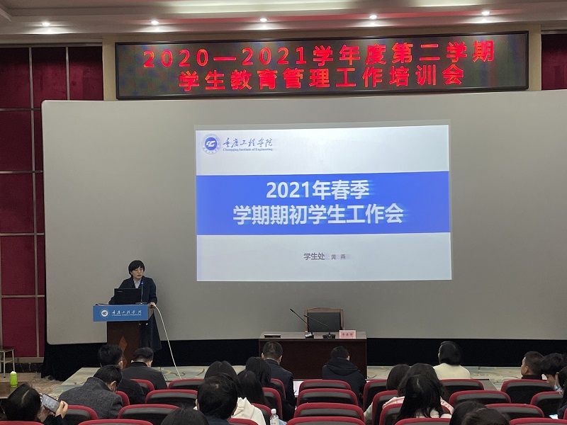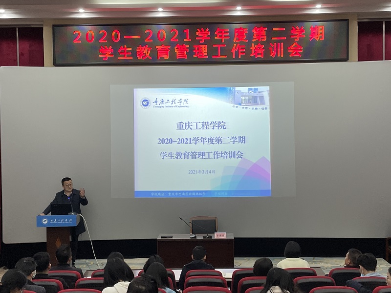 本网讯(文/图 学生处 何杰玲)3月4日,我校在南泉校区行政楼阶梯报告厅举行了2021年春季学期学生教育管理工作培训会,各二级学院书记、学工主任、全体辅导员以及学工部全体成员参加。