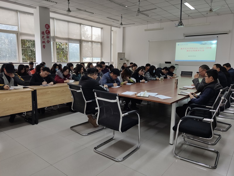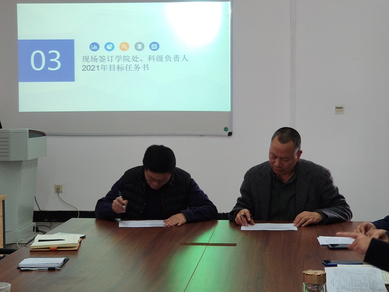 数字艺术学院院长杨开富首先传达了学校期初干部大会精神,对学院2021年度工作计划和目标任务分解原则进行了解读。党总支书记徐小辉,副院长庄涛文、副院长杨飞分别就分管领域的具体重点工作进行了布置,并提出相应要求。会议现场还签订了学院处、科级负责人2021年目标任务书,各科室将围绕目标任务认真履职担责,狠抓落实。