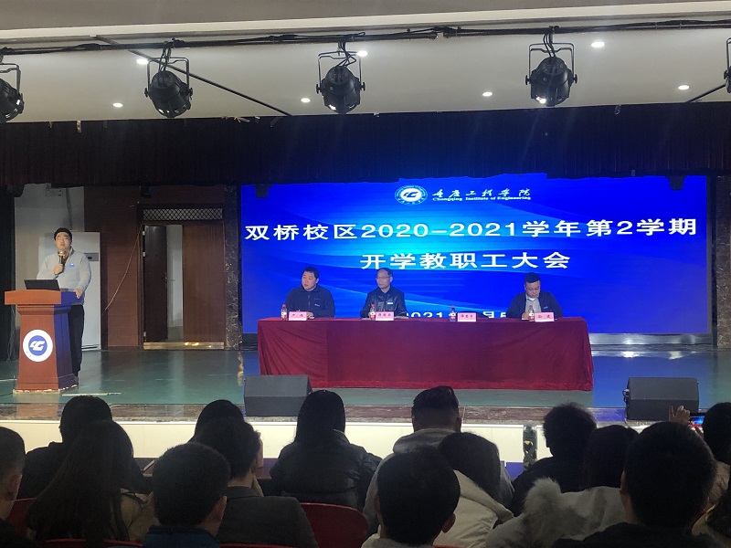本网讯(文/图 双桥校区综合办 王瑜琳)3月5日下午,双桥校区召开了2020-2021学年第二学期开学教职工大会,会议在双桥校区报告厅举行,副校长蒋国华出席,会议由双桥校区党总支书记、管委会副主任谭思宇主持。