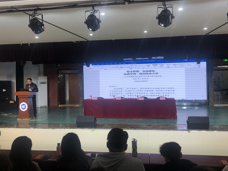 最后,蒋校长对双桥校区2021年的各项工作作了安排部署。他强调,2021年是学校本科教学合格评估的关键之年,要求大家要充分领悟董事长讲话的精神,希望全体教职工要心揣“办成中国一流的民办大学”的重工梦,不忘初心、砥砺前行、勇担责任,为学校的发展贡献自己的力量和智慧。