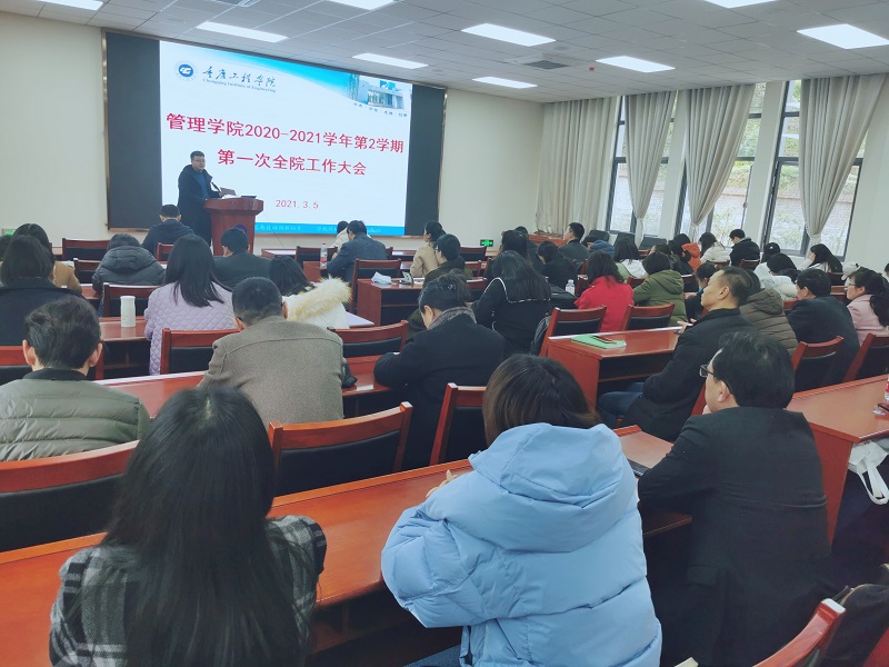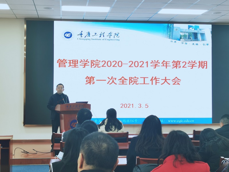 本网讯(文/图 管理学院 宋方伟)3月5日下午,管理学院在办公楼201会议室召开了2020-2021学年第二学期第一次全院工作大会,副校长王琼花应邀出席并做了主题发言。