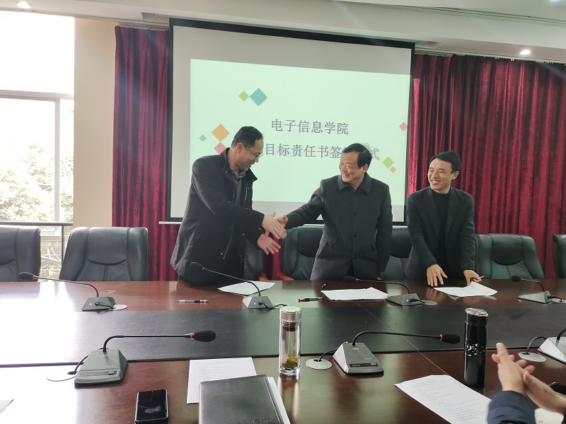 首先,电子学院院长何世彪与各专业负责人签订了2021年工作目标任务书,并传达了王万均董事长在2021年干部大会上的重要讲话精神,逐条讲解了《重庆工程学院2021年工作要点》文件内容,简要传达了2020-2021年度第二学期初干部大会重要精神。何院长还重申了校长讲话中提出的三个工作要求:定规划、明目标;抓特色、提质量;强保障、促发展,强调要做好“信息技术+”的专业人才培养特色、师资队伍特色、校企合作产教融合的人才培养模式特色等重点工作。