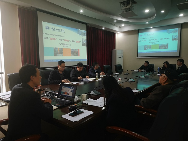 电子信息学院副院长景兴红从课堂教学、实验室管理、实验室管理、近期工作四个方面部署了期初教学工作,学院就业科科长卢瑛围绕就业工作完成情况、就业基地建设、就业基地拓展及学生走访、就业指导讲座、就业工作要求等几个方面,对2021届毕业生就业工作作了动员,同时也提醒工作中要严格执行教育部“三严禁”、“四不准”通知要求。