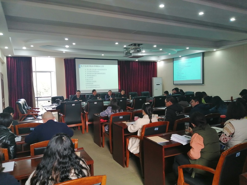 之后,何院长总结了寒假期间学院教师取得的工作成绩,对本学期重点工作进行了强调:一是齐心协力完成今年的目标任务;二是日常教学规范运行;三是学院教学质量保障体系建设,四是教师执教能力;五是专业特色;六是校企合作;七是师资队伍建设;八是课程思政;九是学科建设科研学术;十是实验教学规范运行。