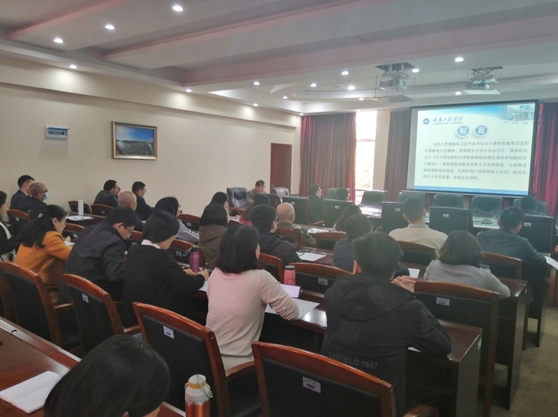 何院长还结合展示的课件内容,在会上通读了《高等学校课程思政建设指导纲要》全文,并就重要的段落进行着重强调、与我们结合较紧密的部分进行了解读。全体教师认真学习、认真做笔记,纷纷表示这次学习收获颇丰,要在课程教学中,落实《纲要》的要求,做到教书育人。