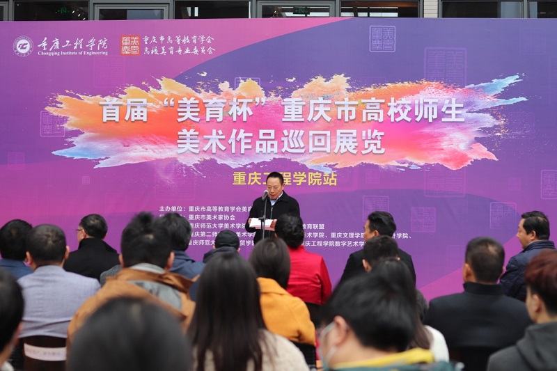 之后,党委书记谭明术现场宣布首届“美育杯”重庆市高校师生美术作品巡回展重庆工程学院站正式开幕,现场领导、嘉宾和师生们一起在艺术展览馆和图书馆观看了展览。