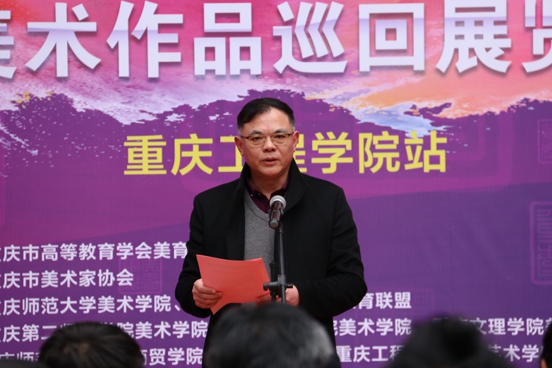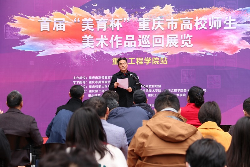 本网讯(文/数字艺术学院 庄涛文 图/大学生记者团 袁艺谋 何华玲)为贯彻落实习近平总书记关于美育工作的重要指示精神,进一步强化学校美育育人功能,构建德、智、体、美、劳全面培养教育体系,3月22日上午,由重庆市高等教育学会美育专委会主办的“美育杯”重庆市高校师生美术作品巡回展第六场开幕式在我校艺术展览馆举行,本场巡展也是此次活动的最后一站。