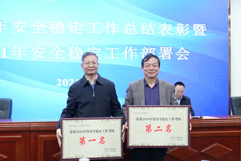 会议通报了2020年我校各二级学院、职能部门安全稳定工作考核结果,表彰了获奖单位,获奖单位代表大数据与人工智能学院做了交流发言。