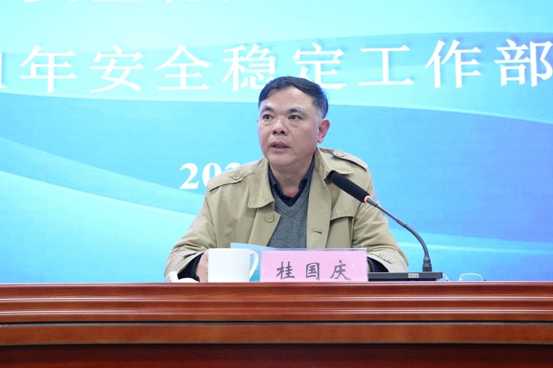 校长桂国庆在会上作了《强化责任 勇于担当,为学校高质量发展保驾护航》的讲话,他指出:全校上下要树立“三种意识”,切实把安全稳定工作摆在重要位置;要坚持“三个机制”加强领导,强化责任意识;立足“六个入手”,把各种不安全因素化解在萌芽状态;要强化监督,切实保证安全稳定工作落地生根。桂校长还强调,今年是学校贯彻落实第二次党代会确立的奋斗目标的奋进之年,也是迎接本科教学工作合格评估的关键之年,全校要做好安全稳定工作尤为重要,师生要以习近平新时代中国特色社会主义思想为指导,全面学习贯彻总书记提出的“要树立安全发展理念,弘扬生命至上,安全第一”的思想。安全稳定工作要始终把师生的生命安全放在首位,强化红线意识,全方位筑牢安全稳定工作责任体系,层层压实责任,全力抓好学校安全稳定工作。