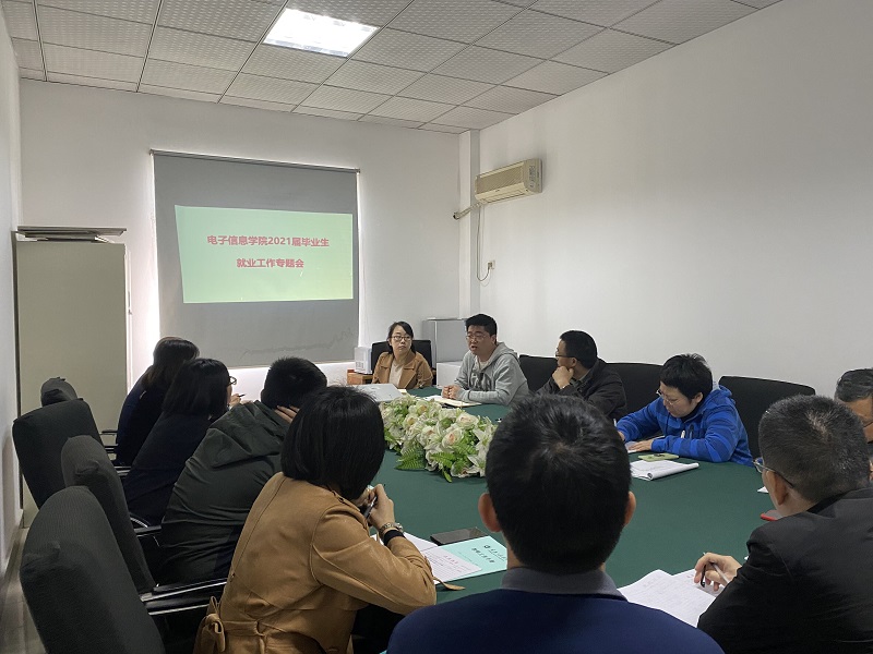 本网讯(文/图 电子信息学院 卢瑛)为切实做好2021届毕业生就业工作,4月12日中午,电子信息学院组织院内的电子工程系、通信工程系、自动化系集中召开2021届就业工作专题会,会议由学院党总支书记谭思宇主持,就业科、各系主任、就业指导老师、专业班导师和毕业班辅导员全部参加。