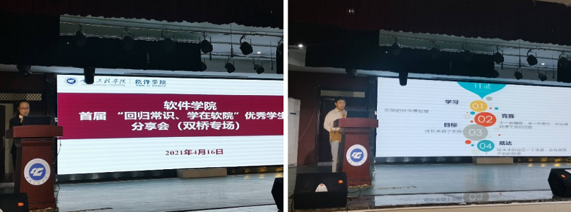 本网讯(文/图 软件学院 李阳 滕攀)4月14日和17日,软件学院于分别在南泉校区、双桥校区举办了首届“回归常识、学在软院”优秀学生经验分享交流会。软件学院党总支书记刘子菱,相关部门负责人、辅导员老师代表,南泉校区的300余名学生和双桥校区近700人参加了各自的两场交流会。