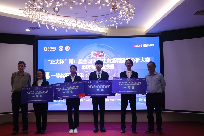 本网讯(文/图 管理学院 沈泽梅)4月24日,“正大杯”第十一届全国大学生市场调查与分析大赛重庆赛区选拔赛在大渡口区云谷总部基地4号楼举行。本次比赛共有从重庆各地区高校选拔出的12支优秀队伍参加,由我校管理学院市场营销专业教师李英吉、邹卒指导,学生黄林、李霜、杨鑫、牟宏懿组成的队伍代表学校参加比赛。经过激烈角逐,管理学院团队在比赛中脱颖而出,最终以优异成绩荣获一等奖。这是我校学生第一次参加“正大杯”比赛,之后该团队还将代表重庆地区继续参加全国总决赛并争夺海峡两岸赛的参赛资格。