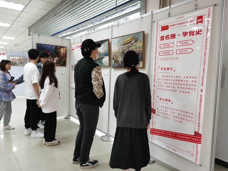 本次展览由重庆公图网络科技有限公司组织,活动内容包括“赏名画•学党史”、“悟思想•办实事”、“开新局•向未来”三个系列。“赏名画•学党史”系列中展出了中国共产党成立至今各个时期重大历史事件的美术作品,全面展现了党的奋斗历程和光荣传统;“悟思想•办实事”系列介绍了党的十八大以来所取得历史性成就、发生历史性变革的进程,并结合党史问答等内容让现场师生学习了新时代党的创新理论;“开新局•向未来”系列详细科普了中国共产党“两个一百年”奋斗目标,让高校师生坚定信仰信念,与党同心同行。