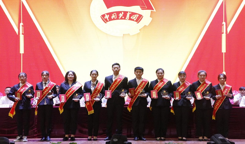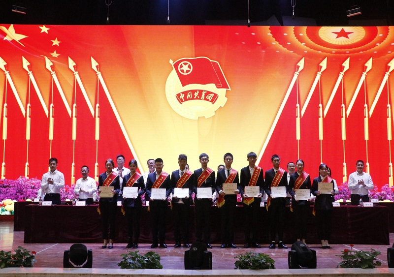 与会领导们依次为优秀共青团员、优秀共青团干部、优秀社团干部、五四红旗团支部、优秀团支部、优秀社团、市级以上获奖个人代表颁奖。优秀共青团干部代表朱健龙和五四红旗团支部代表张瀚瑶依次上台发言。