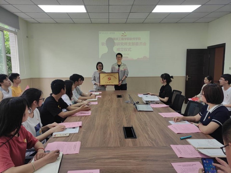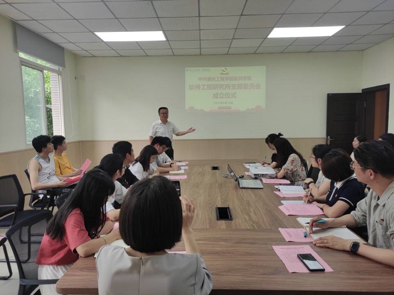 仪式上,刘子菱现场宣读了《关于成立中共重庆工程学院软件工程研究所支部委员会的决定》,详细介绍了党支部成立背景、目的和支委会成员名单,并向软件工程研究所授牌。软件工程研究所党支部书记汪俊良在发言时表示,软件工程研究所支部将通过开展党史学习教育、支部主题活动等方式凝聚人心,发挥师生党员的先锋模范作用,培养学生爱国、爱党、爱家、爱校、爱所(研究所)等思想和信念。学生党员代表谭建超发言时表示,自己将在学生群体中发挥党员模范带头作用,努力学习专业知识,积极响应学校号召。