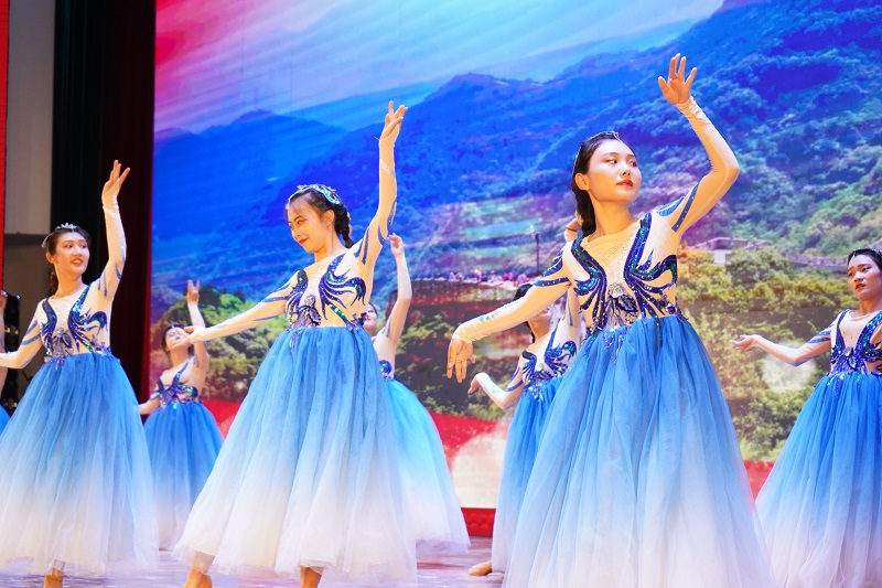 随后,全体现任校领导们上台为大家献上了一曲《真心英雄》,全场共声齐唱,歌声响彻整个大厅;教师代表们献上诗歌朗诵《立新发展二十年》,深情歌颂了母校立初心、尽责任、谋发展、创未来的奋斗历程;管理学院带来的舞蹈《中国美》和大合唱《香樟情怀》,洋溢着全体师生们对母校的深厚情谊。最后,一曲大合唱《我和我的祖国》将整场汇演带入尾声,本次表彰庆典在欢庆的歌声中落下帷幕。