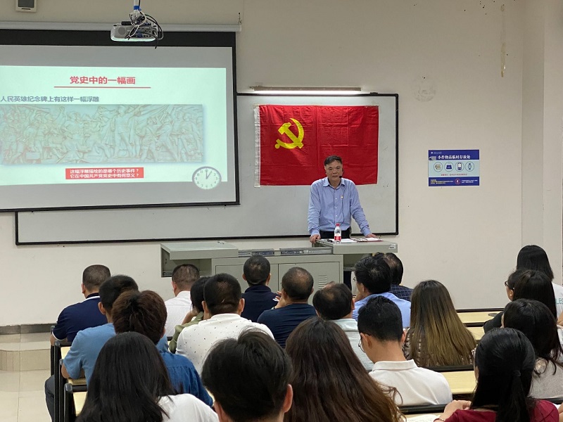 本网讯(文/图 计算机学院 潘晓宇)为扎实推进党史学习教育,引导党员干部和各阶段入党申请人把党的历史学习好、总结好,5月21日中午,计算机与物联网学院在第六教学楼203教室上了一堂党史学习教育课,校长桂国庆专程来为师生们讲课,计算机与物联网学院党总支书记覃华伟负责主持,学院全体教职工、部分各阶段党性分子等共计120人参加。