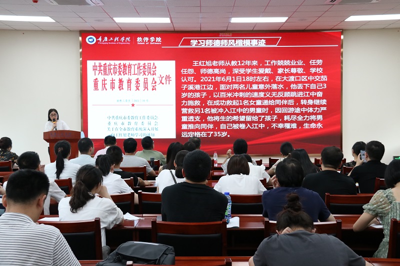 首先,刘子菱现场领学了新时代教师队伍建设改革及师德师风的相关文件,解读了习近平总书记关于教育和教师工作的重要论述和指示批示精神,详细介绍了王红旭老师用生命托举生命的英雄事迹,鼓励老师们学习英雄楷模奋不顾身、舍己救人的大爱精神。