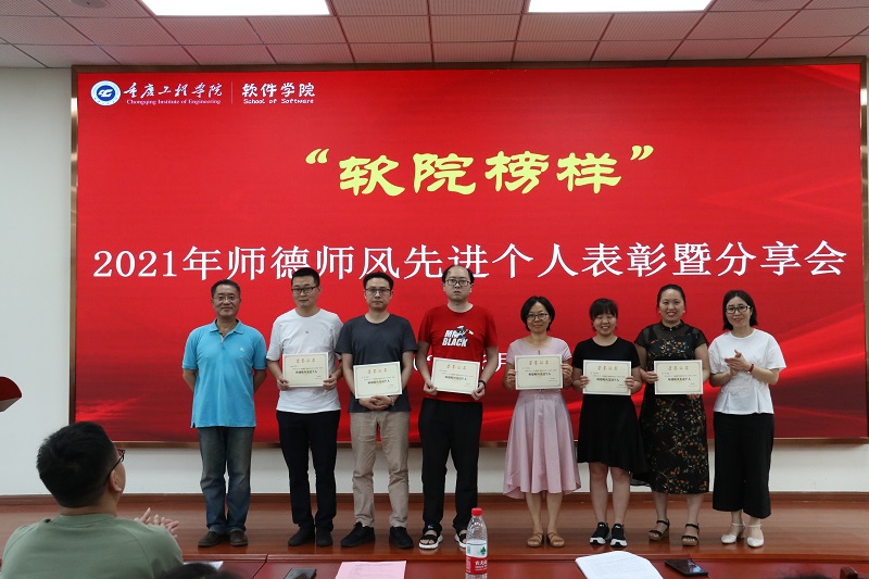 紧接着,王越现场宣读了表彰决定,向王薇、龙丹、火明刚、刘阳、赵商、王平6名教师授予“2021年‘软院榜样’师德师风先进个人”荣誉称号。王越、刘子菱现场为受到表彰的老师颁奖。据了解,本次评选工作细致严谨,经本人申请、部门推荐、学院党政联席会审议并公示无异议后,最终评选出了学院师德师风先进个人。