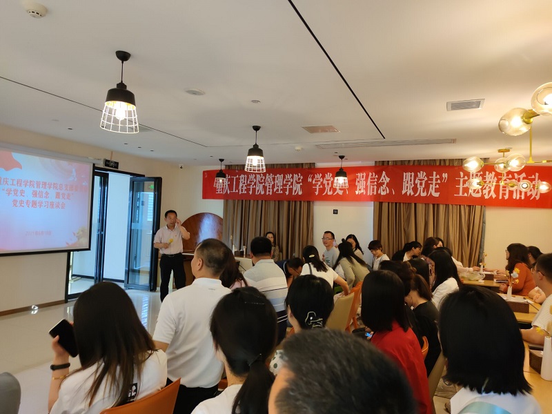 本网讯(文/图 管理学院 荣菁菁)为进一步加强管理学院党员教师的党性修养,坚定理想信念,增强凝聚力战斗力,6月18日、19日,中共重庆工程学院管理学院总支部委员会在贵州遵义会议会址、四渡赤水纪念馆开展组织开展了“学党史、强信念、跟党走”主题教育活动。重庆工程学院副校长王琼花,管理学院院长彭建仿、党总支书记刘达斌、副院长李玲、副院长李英吉以及学院全体党员教师参加了本次活动。