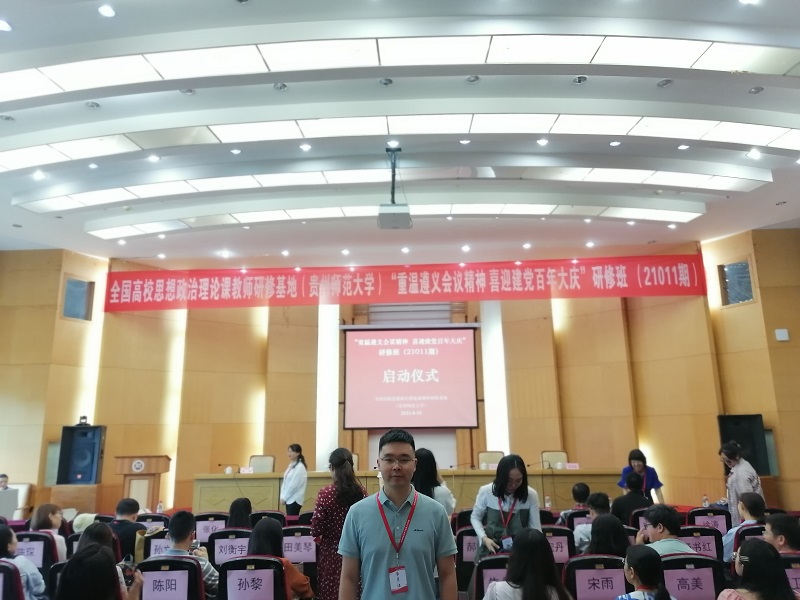 本网讯(文/图 马克思主义学院 黄守强)6月23日—29日,由教育部社科司主办,全国高校思想政治理论课教师研修基地(贵州师范大学)承办的“重温遵义会议精神 迎接建党百年大庆”研修班(21011期)在贵州师范大学正式成立。此次有来自辽宁大学、同济大学、广西科技大学、浙江理工大学等23个省(市、自治区)、42所高校的44名思政课教师参加学习,其中马克思主义学院教师黄守强代表重庆工程学院参加了研修班学习。