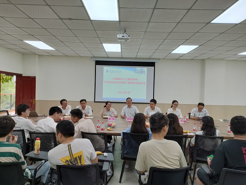 本网讯(文/图 大数据学院 唐蕾)为进一步落实“我为群众办实事”实践活动,了解毕业生思想动态,推进学校内涵发展,7月2日,大数据与人工智能学院举办了重庆工程学院校友分会暨2021届毕业生座谈会。学院院长曹耀钦、支部副书记尚伟、副院长陈欣、杨倩,系主任廖宁、周勇及毕业班辅导员参加,会议由学院党支部副书记尚伟主持。