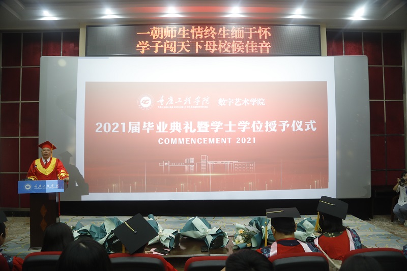 最后,数字艺术学院院长杨开富在总结发言时,对即将离开学校、踏上人生新征程的2021届毕业生们送上了临别祝福,杨院长希望毕业生们在今后的工作和生活中做到四点:一是要心怀梦想,顺势而为;二要善良踏实,豁达担当;三要坚守初心,逐梦前行;四要懂得感恩,回馈社会,杨院长还勉励大家用青春风采书写人生精彩,用奋斗荣耀续写时代荣光。