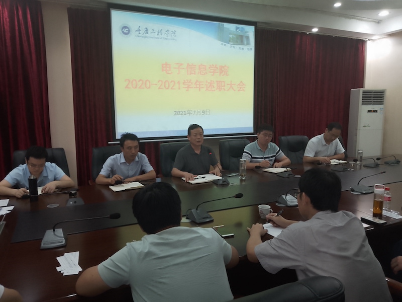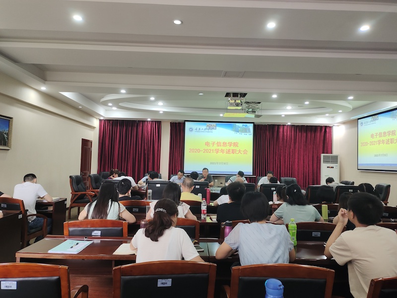 本网讯(文/图 电子信息学院 黄炼旗)2021年7月9日下午,电子信息学院在第七会议室召开了2020-2021学年度教职工述职大会。学院全体领导、教师、辅导员参加了此次大会,会议由学院办公室主任涂敦兰老师主持。