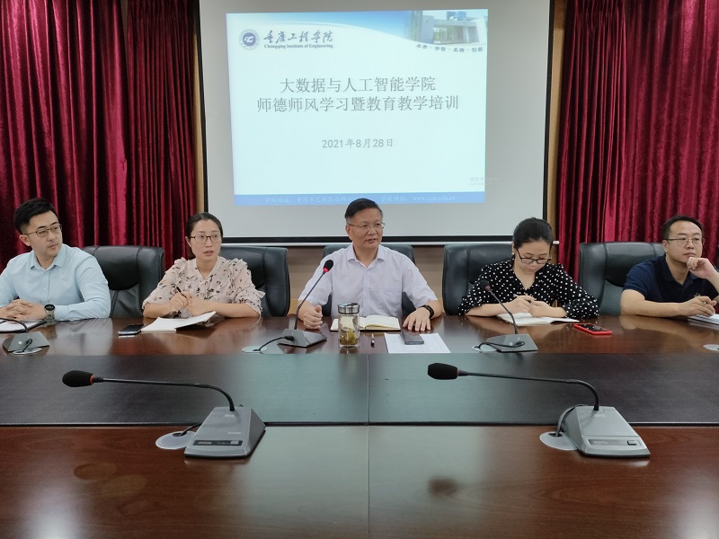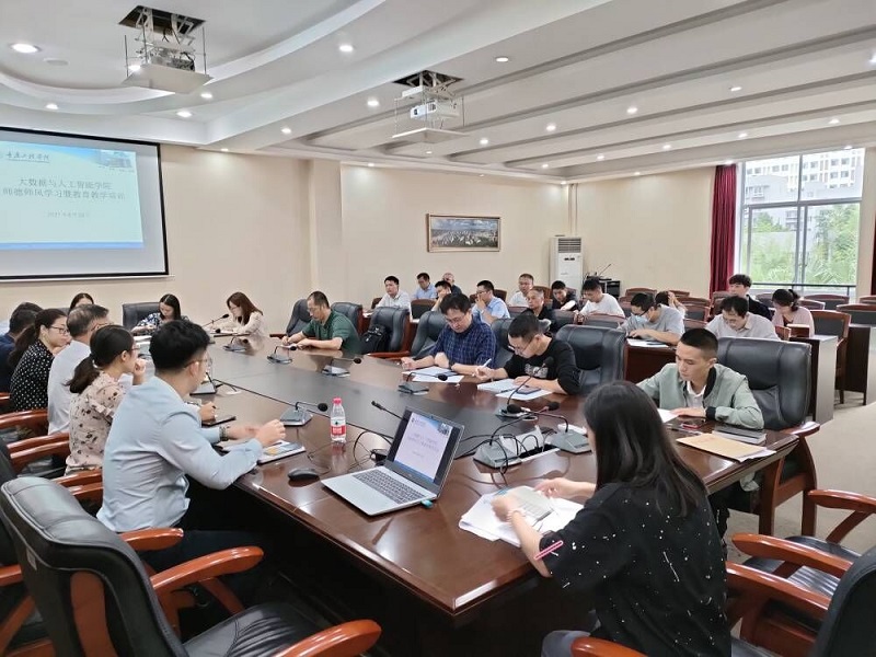 本网讯(文/图大数据与人工智能学院 唐蕾)8月28日上午,大数据学院在学校第七会议室召开了2021-2022学年第一学期开学工作部署会暨师德师风培训。本次大会由曹耀钦院长主持,大数据学院全体教师参加了本次会议。