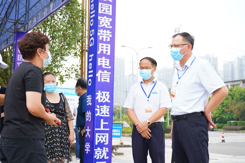 勠力同心,坚守一线。2日上午,学校校长桂国庆一行来到双桥校区迎新接待站,了解新生报到注册情况,慰问现场工作人员和志愿者。桂校长要求全体工作人员服务为先,以学生为中心,切实做好迎新各项工作,要让同学们有回家的感觉。