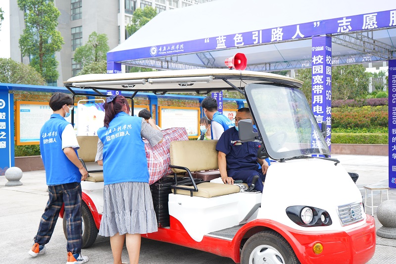 热情周到,“家入校园”。为了做好疫情防控,今年新生报到家长不能陪同进入学校,学校以优质的迎新服务,得到学生、家长的理解和认同。学校在龙头寺火车站、菜园坝火车、重庆西站和大足南站设置的四个接待站与校园内的迎新总站、宿舍接待点无缝链接,做好接待的每一个环节。火车站到学校有校车接送新同学,走进校园,走进每一个环节都有志愿者引导、陪伴。工作人员和迎新志愿者用热情的微笑、温暖的双手,让第一次远离父母的重工学子感受到家一样的温暖。让家长对孩子进入重庆工程学院学习生活多了一份安心和放心。