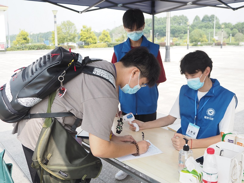 精心筹备,周密布置。为确保常态化疫情防控下的迎新工作安全、有序进行,学校对迎新点现场布置、疫情防控举措、道路交通、人员疏导、医疗保障、后勤服务和校外交通枢纽接站等工作提前进行周密部署和细致安排。为营造更多元丰富的迎新氛围,提供更高效周到的报到体验,学校各部门联动,推进信息化、人性化服务。校团委、学生会和各院系广泛动员,两百余名学生“蓝色引路人”志愿者加入到了学校的迎新队伍之中,帮助新生完成报到手续。按照学校总体安排,学生通过一部手机即可完成来校报到、线上申请、行程填报、扫码核验等环节,悉心保障新生来校全过程“通、顺、暖”。