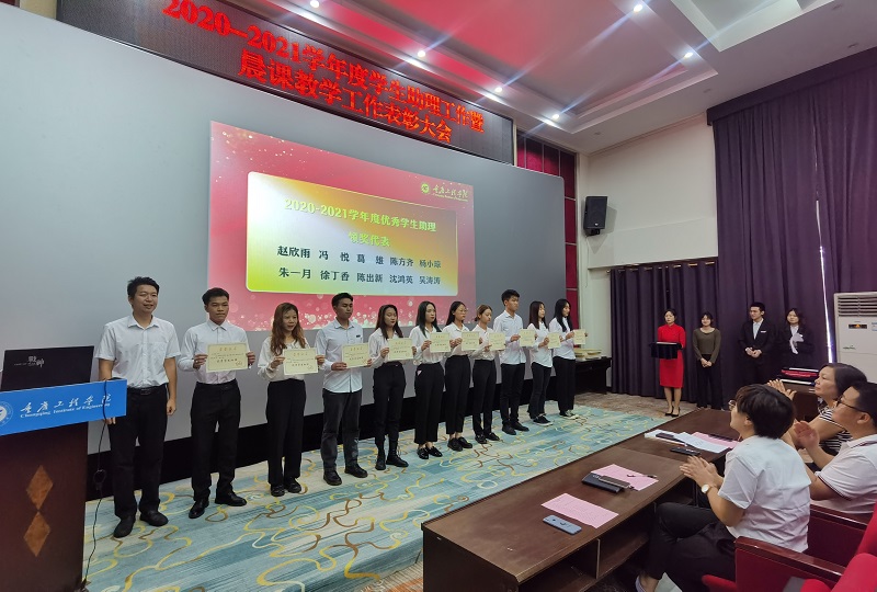 会上学工部部长黄燕、素质教育中心副主任邹春霞分别宣读了《关于表彰2020-2021学年度优秀学生助理、学生助理团队、指导教师和组织单位的决定》《关于表彰2020-2021学年度重工演讲之星、优秀晨课助教、优秀指导教师和晨课组织先进班级的决定》,并对所有的获奖同学、老师、组织单位表示祝贺。