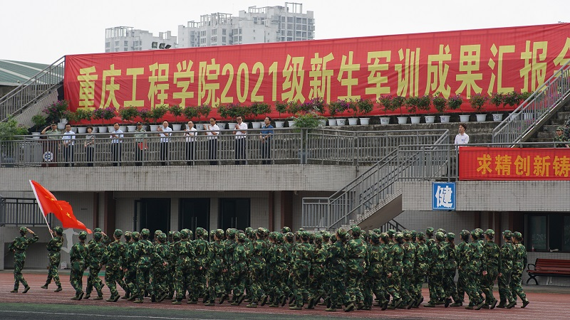 张业平宣读了《重庆工程学院关于表彰2021级新生军训先进集体和个人的决定》,学校领导为军训先进集体和优秀个人进行颁奖。