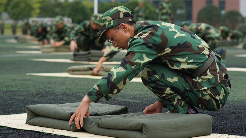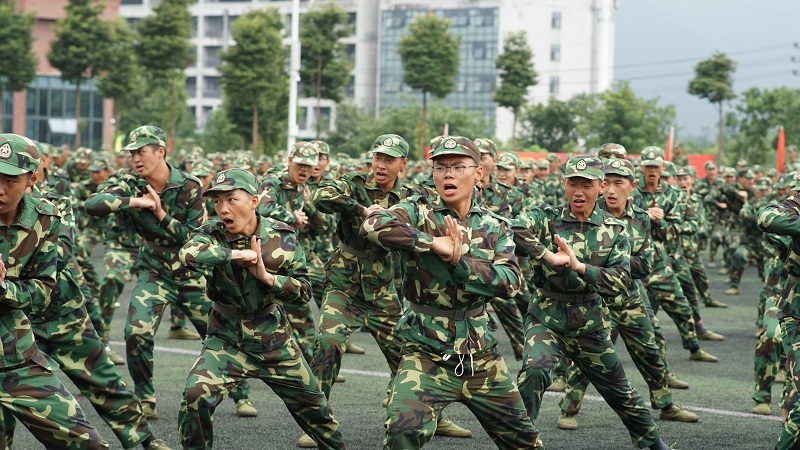 踏步虎生威,铁拳惊风雷。军体拳表演拳风飒飒,一招一式中尽显同学们坚韧不拔、勇敢顽强的战斗作风;手语操,旗语操表演整齐规范,刚健有力;内务整理展示了新生良好的精神风貌,赢得全场掌声雷动。