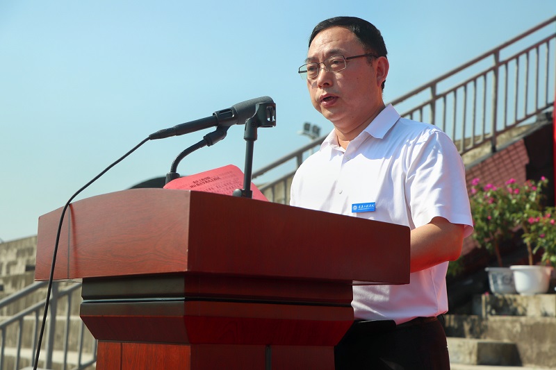 桂国庆代表学校对新同学开启新征程表示了热烈的祝贺。他强调,2021年是极其特殊的一年,我们迎来了中国共产党百年华诞,也迎来了重庆工程学院校庆20周年。20年来,学校始终坚持立德树人根本任务,坚持“校企合作、产教融合”办学模式,形成了以工学为主,管理学、艺术学、文学等学科协调发展的学科体系;以“信息技术+”为专业人才培养特色,开设有软件、大数据、人工智能、物联网、电子信息、数字艺术、智能建造、电子商务等领域共24个本科专业(群),在校师生16000余人。同时,经第三方社会机构评估,学校近五年毕业生就业率均达到95%以上,多次被授予“重庆市普通高校就业创业工作先进集体”,也是全市唯一一所民办党建工作示范高校。近三年来,同学们在国家及省市级学科竞赛中获奖1400余项,在同类院校中位居前列。