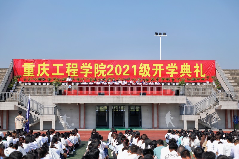 重庆工程学院2021级开学典礼在庄严的国歌声中拉开序幕。