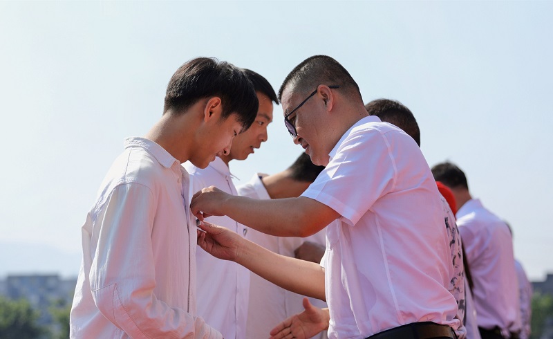 在现场师生共同见证下,校领导为各学院新生代表佩戴了校徽。戴上校徽,从此成为重工人,与重庆工程学院血脉相连。