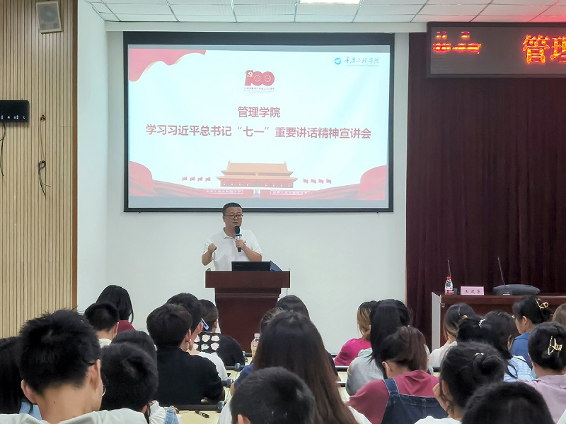 本网讯(文/图 管理学院 付睿)为广泛深入学习宣传贯彻习近平总书记在庆祝中国共产党成立100周年大会上的重要讲话精神,管理学院精心组织、周密部署,全覆盖、多形式开展“七一”重要讲话精神学习宣讲,在全院迅速掀起学习热潮,形成浓厚氛围,取得积极成效。