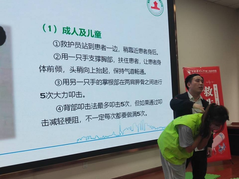 王信红老师亲自给学员们演示气道堵塞的急救方法与步骤(图)